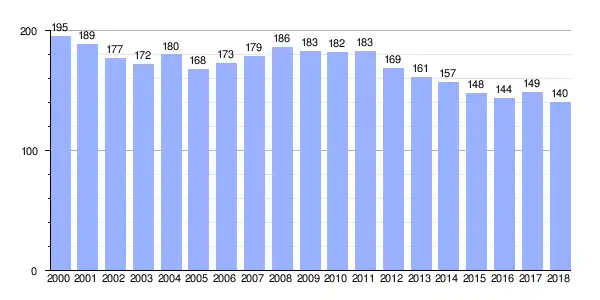 | Gráfica de evolución demográfica de Montellos entre 2000 y 2018 |