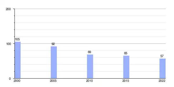 | Gráfica de evolución demográfica de Monte Longo entre 2000 y 2022 |