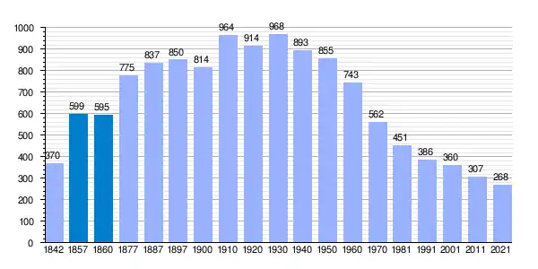 | Gráfica de evolución demográfica de Montemayor del Río[13] entre 1842 y 2021 |
