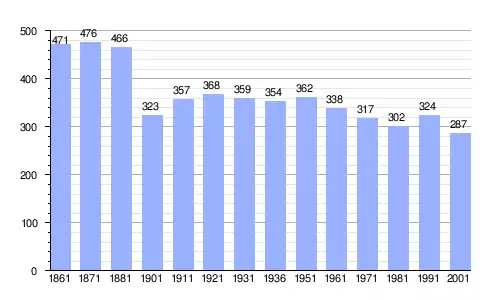 | Gráfica de evolución demográfica de Montemezzo entre 1861 y 2001 |