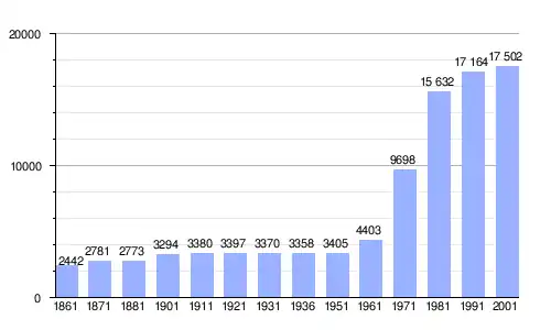 | Gráfica de evolución demográfica de Montemurlo entre 1861 y 2001 |