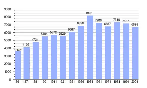 | Gráfica de evolución demográfica de Montenero di Bisaccia entre 1861 y 2001 |
