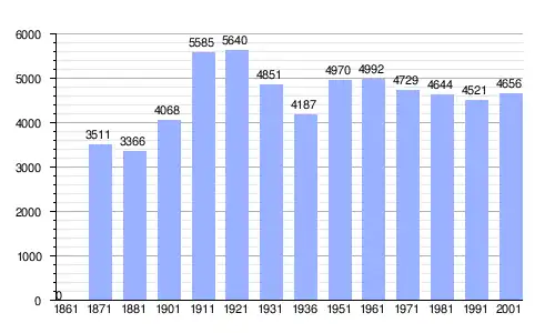 | Gráfica de evolución demográfica de Montereale Valcellina entre 1861 y 2001 |