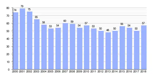 | Gráfica de evolución demográfica de Montesalgueiro entre 2000 y 2018 |