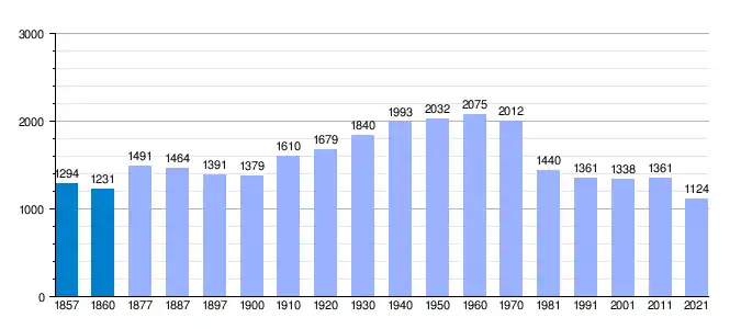 | Gráfica de evolución demográfica de Montillana[5] entre 1857 y 2021 |