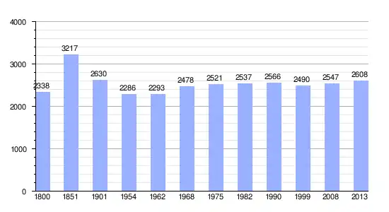 | Gráfica de evolución demográfica de Montmoreau entre 1800 y 2013 |