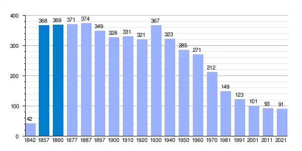 | Gráfica de evolución demográfica de Montornès de Segarra[5] entre 1842 y 2021 |