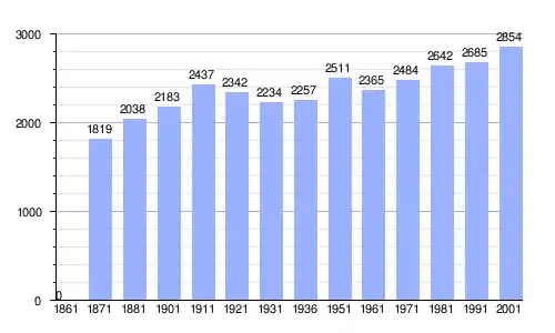 | Gráfica de evolución demográfica de Montorso Vicentino entre 1861 y 2001 |