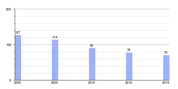 | Gráfica de evolución demográfica de Montouto entre 2000 y 2019 |