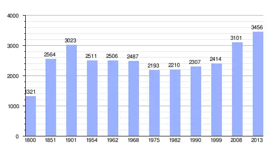 | Gráfica de evolución demográfica de Montréverd entre 1800 y 2013 |