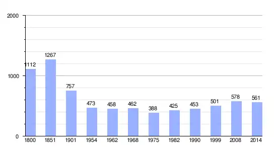 Los datos demográficos contemplados en este gráfico de la comuna de Montsecret[4] se han cogido de 1800 a 1999 de la página francesa EHESS/Cassini, y los demás datos de la página del INSEE.[5]