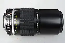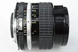 - Micro — Los objetivos Micro-Nikkor son capaces de alcanzar factores de ampliación altos, típicamente 1:2 o 1:1, para macrofotografías. El primer objetivo Micro-Nikkor fueron creados para producir microfilmes de textos Kanji.[6]