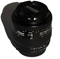 - AF-N — Indica la "Nueva" versión de un objetivo AF. El reemplazo del anillo de enfoque de plástico de los primeros objetivos AF por un nuevo anillo de enfoque con inserto de goma ("rubber inset focus ring", RIFR) a menudo es indicado por la designación AF-N.