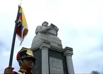 ![]() Monumento a Luis Alberto Costales, de fondo el volcán Chimborazo | ||