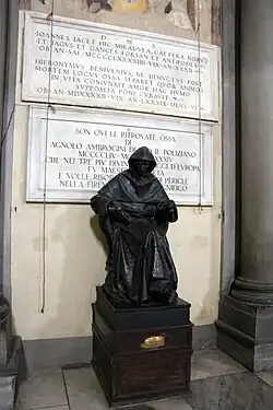 - En el convento de San Marco en Florencia, fundado en el siglo XII por los monjes vallombrosianos,[6] se encuentra una estatua de Girolamo Savonarola, lugar en el que vivió el fray durante 1491 hasta que fue condenado a la horca y sus restos quemados en la hoguera el 23 de mayo de 1498.[7]