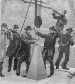 INGENIERO JEFE Y ARQUITECTO, THOS. LINCOLN CASEY, CORONEL, CUERPO DE INGENIEROS. Ayudantes: GEORGE W. DAVIS, CAPITÁN, INFANTERÍA, BERNARD R. GREEN, INGENIERO CIVIL. Maestro Mecánico. P. H. MCLAUGHLIN. LAUS DEO.