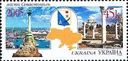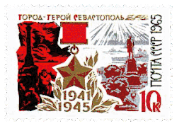 ![]() Sello postal "Ciudad Heroica de Sebastopol" de la Unión Soviética. |