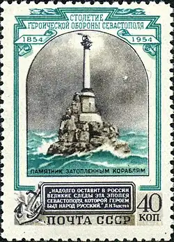 ![]() Estampilla soviética por el centenario del Sitio de Sebastopol. |
