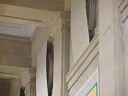 La simbología de la época franquista no ha sido retirada, aunque ha sido ocultada con maderas y carteles.[8] La retirada de simbología franquista es obligatoria por ley en Navarra desde la publicación de la Ley de Símbolos de Navarra de 2003, que tiene, a este respecto, la siguiente disposición transitoria única: