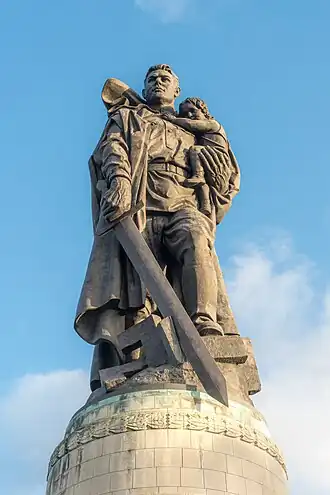 Tras el final de la Segunda Guerra Mundial, el Ejército Rojo erigió cuatro monumentos de guerra en la ciudad de Berlín.[3] En conmemoración a los soldados muertos, especialmente los aproximadamente 80 000 soldados soviéticos que cayeron durante la batalla de Berlín.[6] Estos no solo fueron monumentos dedicados a la victoria soviética sobre Alemania, sino también cementerios militares y, por lo tanto, sepulcros de soldados soviéticos en Alemania. Entre los monumentos conmemorativo soviéticos están Schönholzer Heide (brezal de Schönholz) y el que se encuentra en Tiergarten, cercano al edificio del Reichstag.