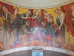 Los últimos dos sarcófagos que están dedicados a la muerte heroica, se ubican en una línea que limita con el montículo artificial, en el que se encuentra la base cónica con la monumental escultura de "El Libertador Soviético" del escultor Yevgueni Vuchétich, que domina el horizonte del monumento.
