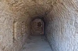 Del monumento se conserva una cámara cuadrada precedida por una larga galería hecha de mampostería también construida bajo tierra. Esta galería, de 2,1 m de ancho por 2,8 m de alto, y con una longitud conservada de 30,5 m, tiene una cubierta con bóveda de cañón y siete tragaluces situados a un metro de altura del suelo.[1] A través de una puerta de 1,6 m de vano por 1,9 m de profundo, se accede a la cámara, que también conecta directamente con la superficie por medio de una escalera de caracol, situada en el ángulo noreste, de la que se conservan diecinueve peldaños hechos de piedra arenisca. La cámara presenta una planta de 4,2 por 3,8 metros, con ábside rectangular en la pared opuesta a la escalera. El ábside sobre-elevado mide 2,7 por 1,35 m y tiene una altura de 2,80 m, con cubierta abovedada. La cámara presenta una ventana abocinada en la parte alta de cada una de las paredes y, al parecer, se cubría mediante cúpula, aunque ésta no se ha conservado. En el centro de la cámara existía una pequeña pileta octogonal a la que llegaba mediante una tubería de plomo una conducción de agua procedente de la superficie y empotrada en la pared del ábside.[1]