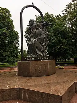 - ↑ «Gəncədə Nizami Gəncəvinin restavrasiya olunmuş heykəlinin açılışı olub » Dəyərlər AİN». deyerler.org (en ruso). Archivado desde el original el 10 de marzo de 2013. Consultado el 10 de septiembre de 2018.