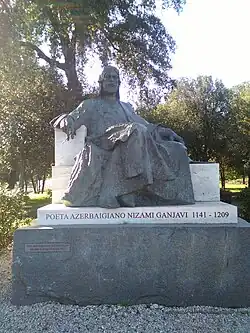 El monumento a Nizami Ganyaví en Roma fue establecido por el orden del Presidente de la República de Azerbaiyán de 23 de diciembre de 2011 "sobre la celebración del 870 aniversario del poeta Nizami Ganyaví". Se ecncuentra en el parque Villa Borgeze en el calle Viale Madama Letizia. Los autrose del monumento son Salkhab Mammadov y Ali Ibadullayev. La ceremonia de apertura del monumento se celebró el 20 de abril de 2012 con apoyo del Fondo de Heydar Aliyev y participación de embajada de Azerbaiyán en Italia.