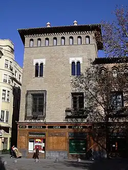 Es el ejemplo más importante del gótico-mudéjar civil de Zaragoza. Es una torre del siglo XV, cuadrada con basamento de piedra y paredes de ladrillo cara vista.