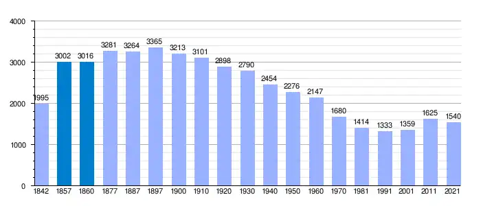 Sin embargo, en el siglo XX su evolución demográfica fue claramente negativa, aunque ha habido cierta recuperación en los últimos años. Su población en 2023 es de 1568 habitantes.[14] Dentro del municipio se encuentra el despoblado de La Olmedilla.