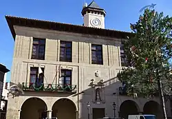 El Ayuntamiento, de volumen paralelepipédico, es un edificio muy macizo. Su fachada de sillería corresponde al estilo herreriano de la primera mitad del siglo XVII, sobria y con moldurajes simples de tipo geométrico.