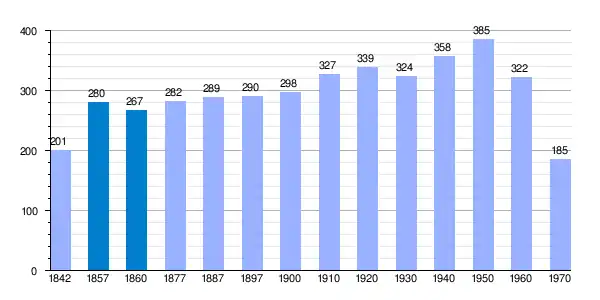 | Gráfica de evolución demográfica de Moraleja de Cuéllar[2] entre 1842 y 1970 |