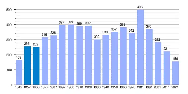 | Gráfica de evolución demográfica de Morales de Valverde[10] entre 1842 y 2021 |