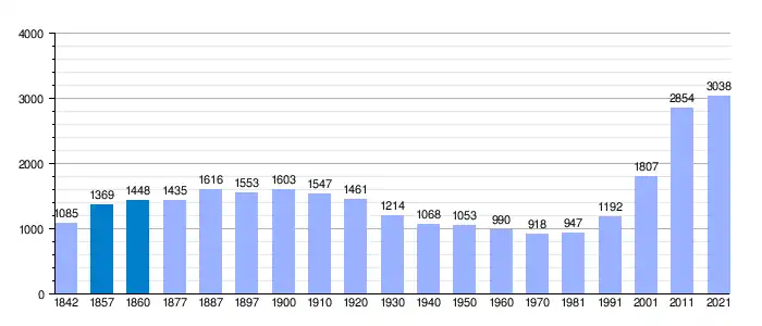 Su evolución demográfica se asienta sobre los datos siguientes: 245 vecinos contaba a finales del siglo XVI; 300 dos siglos después (según fuentes no documentadas), entre 1300 y 1400 en 1857-60 (datos INE, de los que al menos 1300 eran residentes legales) para luego caer a unos 1000 habitantes según el censo de 1960. Hoy cuenta con casi 3000 vecinos (2017).
