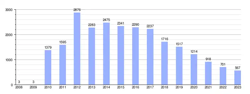 | Gráfica de evolución de la deuda viva del Ayuntamiento de Morales entre 2008 y 2023 |