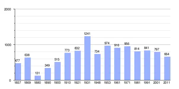 | Gráfica de población de Moravice 1857-2011 |