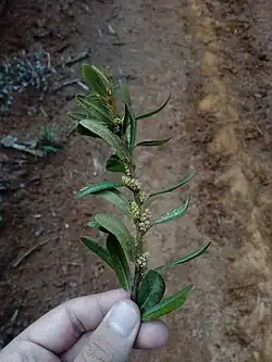 Son arbustos de 3 - 5 m de altura, con flores dioicas (raramente monoicas), poseen amentos unisexuales; sus hojas son oblongas generalmente glabras, algunas veces glabrescente (que casi no posee pelos); sus nervios primarios y secundarios del haz son ligeramente pubérulos al igual que el nervio primario del enves; brácteas florales principales pubérulas solo en el ápice.[3]