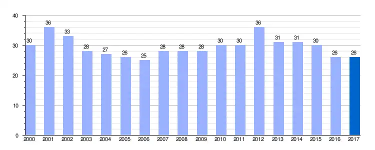 | Gráfica de evolución demográfica de Moriana entre 2000 y 2017 |