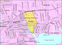 ![]() Moriches Ubicación en el condado de Suffolk y en el estado de Nueva York | ||