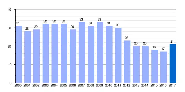 | Gráfica de evolución demográfica de Morillas[3] entre 2000 y 2017 |