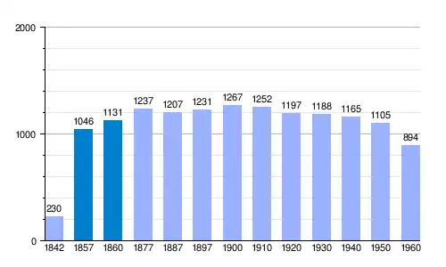 | Gráfica de evolución demográfica de Morillo de Monclús[1] entre 1842 y 1960 |