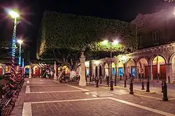 - Jardín principal (Jardín Hidalgo) y arquería.
