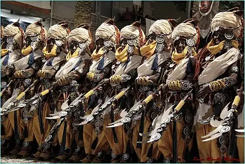 ![]() Escuadra Oficial de la Filà Manta Roja en el desfile de la Entrada | ||