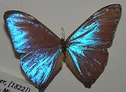 - ↑ Cassildé, C., Blandin, P., & Silvain, J. F. (2012). Phylogeny of the genus Morpho Fabricius 1807: insights from two mitochondrial genes (Lepidoptera: Nymphalidae). In Annales de la Société Entomologique de France (Vol. 48, No. 1, p. 173).