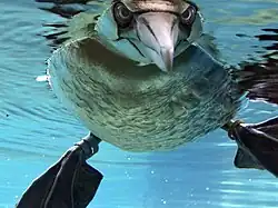Habitualmente sumergen la presa escogida y la capturan en el camino hacia la superficie. Los peces de tamaño medio son tragados empezando por la cabeza. Los pequeños pueden devorarlos de través o por la cola. Las bolsas de aire subcutáneas les facilitan la salida rápida a la superficie.