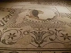 - ↑ 1,0 1,1 1,2 1,3 El mosaico romano de "los orígenes de Roma" . Barcelona: Ed. Laia, 2004, p. 134. ISBN 8493337145 .
