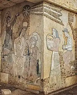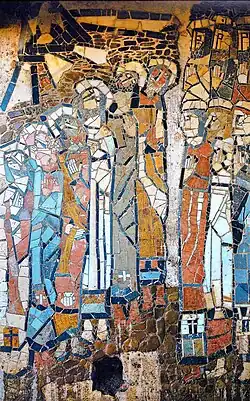 — En el mosaico de "Los doce apóstoles y el Espíritu Santo" se ha practicado un agujero en su parte inferior [con el fin de que las gallinas entren y salgan del edificio], que según fotos antiguas no ha afectado a ningún elemento del mosaico.