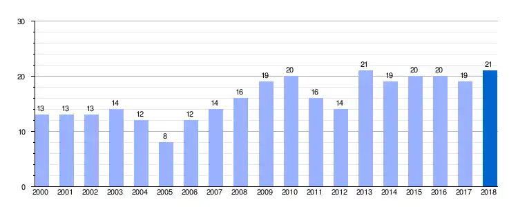 | Gráfica de evolución demográfica de Moscador de Treviño entre 2000 y 2018 |
