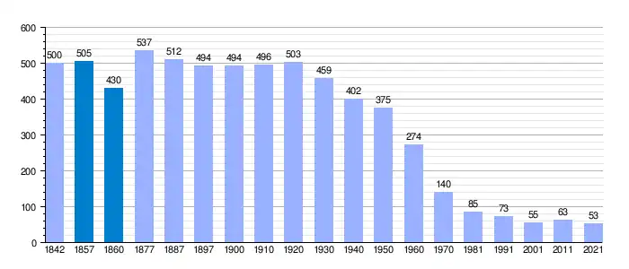 | Gráfica de evolución demográfica de Moscardón[4] entre 1842 y 2021 |