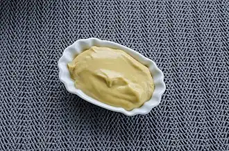 ![]() Mostaza coloreada con cúrcuma tipo americano o mostaza preparada. | ||